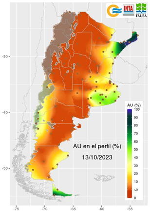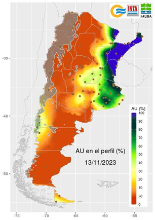 The western and northern areas of Córdoba are presenting the most unfavorable records in terms of useful water reserves in the soil profile. Consequently, peanut plantings in these regions are lagging behind compared to the rest.