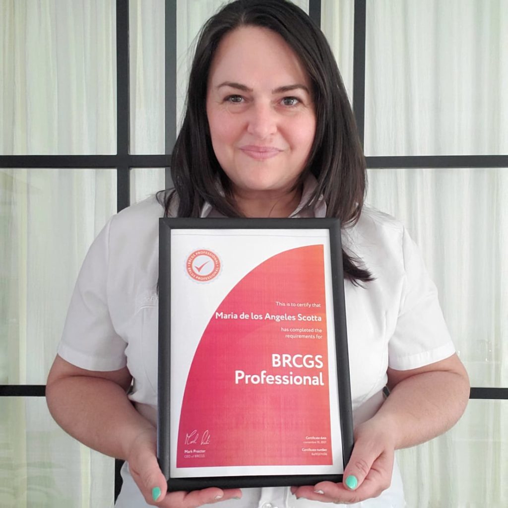 After completing the BRCGS Academy “BRCGS Professional” Program, which provides courses to develop the skills required to implement effective product safety management practices, María received her BRCGS Professional badge and certificate.