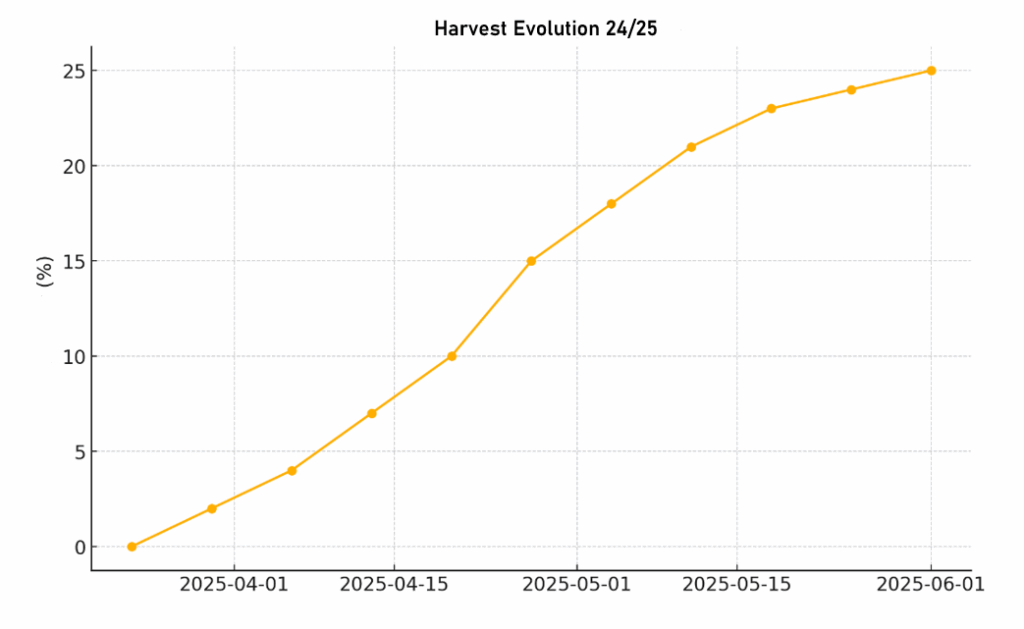 May marked the beginning of the final stretch of the 2024/25 season, with digging fully completed and harvest progressing more slowly than expected, hindered by both weather and logistical factors.